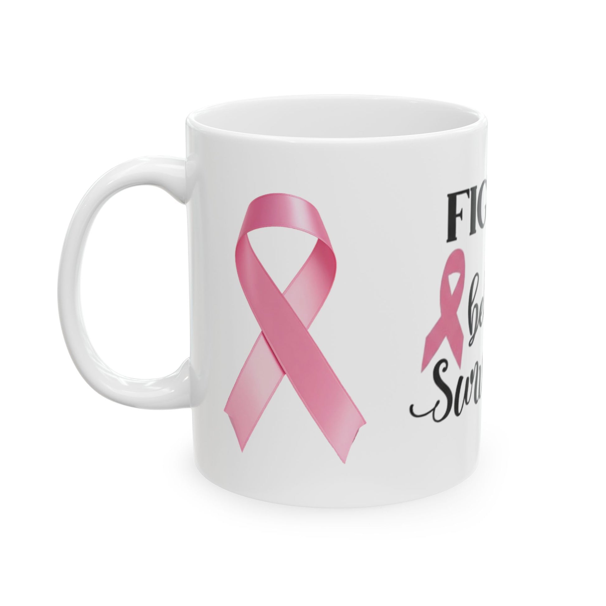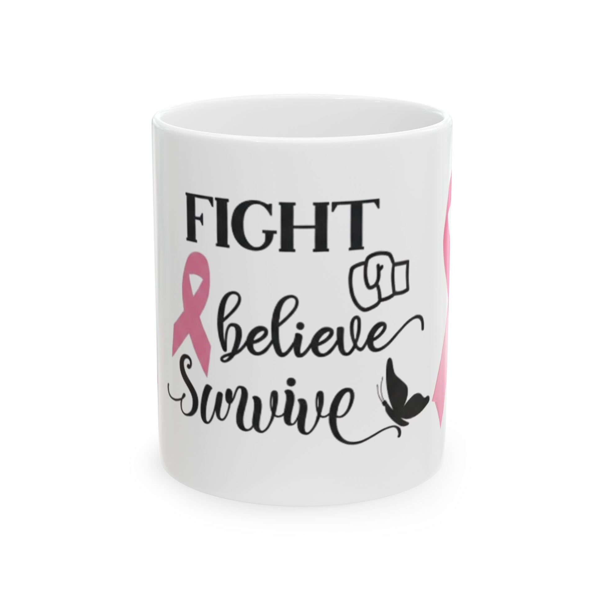 Breast Cancer Awareness Mug — "Fight Believe Survive" Ceramic Coffee Cup (11oz, 15oz)